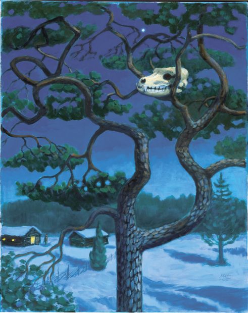 – Olen siis joissakin paikoissa kääntänyt sini-sanaa grønn-sanalla. Siniviitaksi kutsutaan joitakin metsän olentoja, ja olen antanut niille vihreät vaatteet, kertoi Holmberg. – Esimerkiksi säkeestä ”siniviitta viian eukko” on tullut ”kone i din grønne mantel”. Olen yleensä käyttänyt grønn-sanaa metsän adjektiivina, siinä missä metsää kutsutaan Kalevalassa siniseksi.