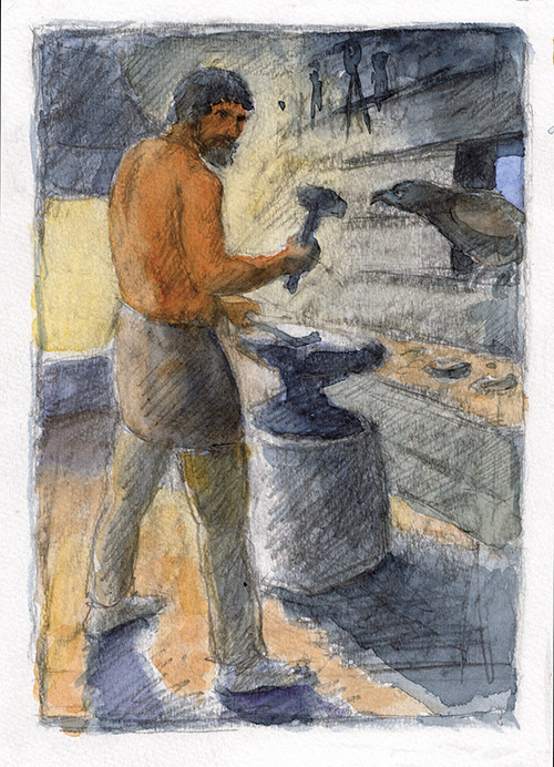 Kääntäjä, kuvittaja ja sarjakuvatekijä Mikael Holmberg on viimeiset neljä vuotta työskennellyt Kalevalan parissa. Oikeastaan rupeama on ollut pidempikin, vuonna 2006 Holmbergiltä ilmestyi Kampen om Sampo – historier fra Kalevala (Omnipax), joka sisälsi eepoksen tarinoita Holmbergin kertomina ja kuvittamina. Tuon kirjan pohjalta syntyi myös lapsille suunnattu näytelmäkäsikirjoitus.