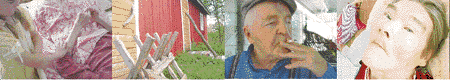 Istuin saunan alalauteilla. Äiti ja iso- sisko,